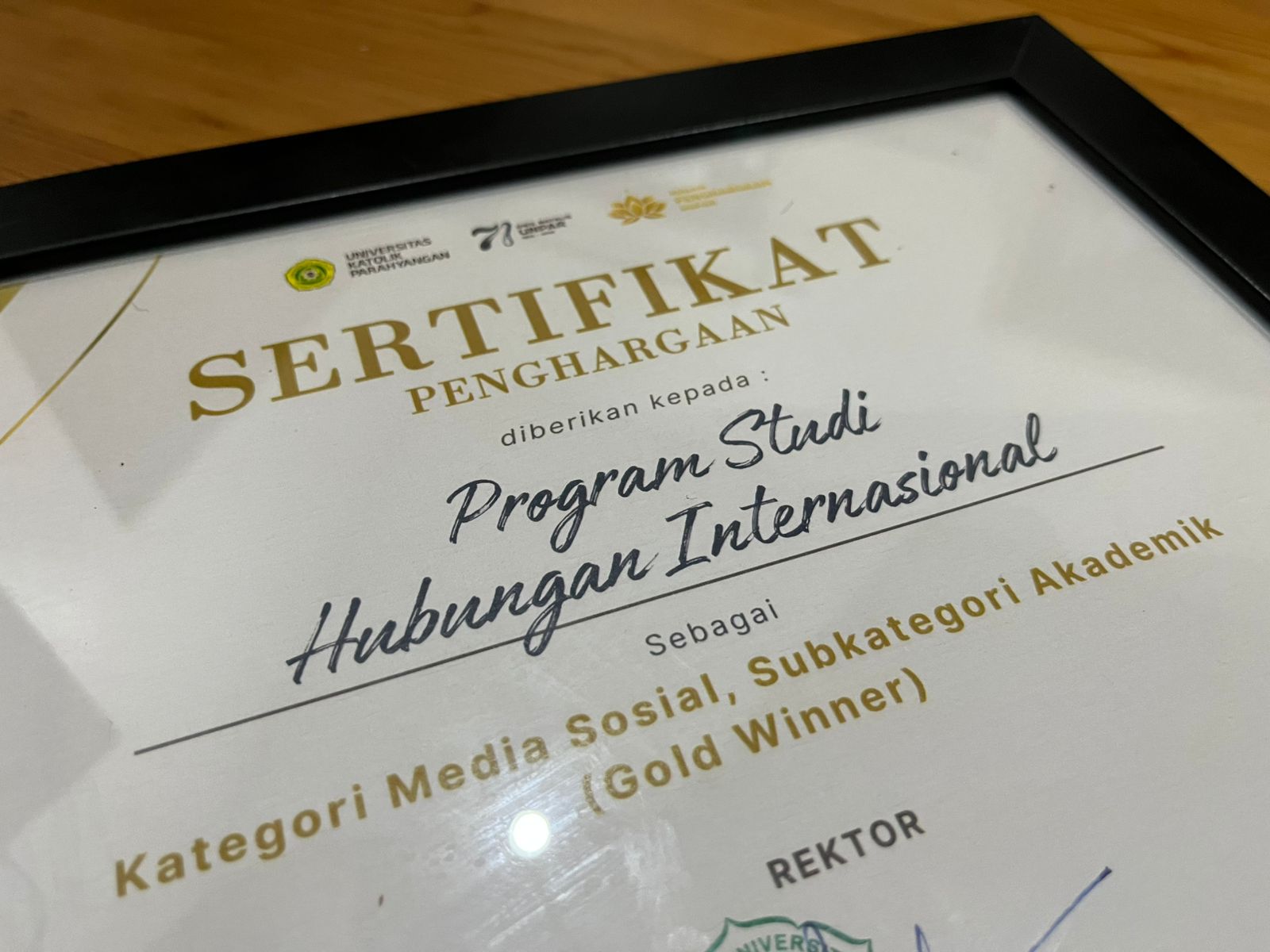 Dalam ajang tersebut, Program Studi Hubungan Internasional UNPAR berhasil meraih Gold Winner pada kategori Penghargaraan Media Sosial subkategori Akademik. Penghargaan ini menempatkan HI UNPAR sebagai Prodi dengan kinerja unggul dalam pemanfaatan media sosial untuk mendukung kegiatan akademik dan non-akademik.